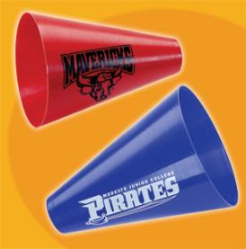 These megaphones are 8” in size, both fun and practical, optional pop- out disk allows them to be used as a container to fill with popcorn, peanuts, or candy. The perfect school spirit item. 1 Color Imprint-2 Sides